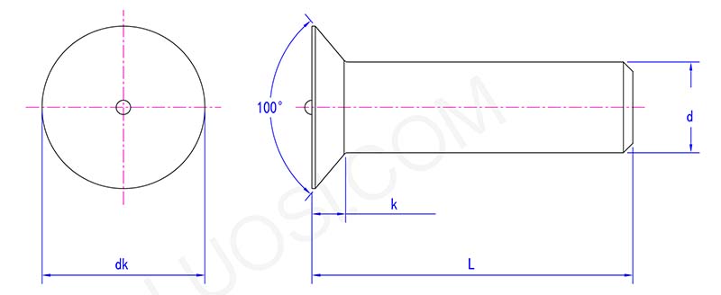 100°फ्लॅट हेड स्टडचा सर्वात मोठा विक्री बिंदू म्हणजे त्याचे फ्लॅट हेड डिझाइन. 100-डिग्री फ्लॅट हेड काही विशेष परिस्थितींमध्ये वापरण्यासाठी अधिक सोयीस्कर आहे. हे 100-डिग्री काउंटरसंक होलसह पूर्णपणे जुळले जाऊ शकते आणि स्थापनेनंतर, पृष्ठभाग जवळजवळ कोणत्याही प्रोट्र्यूशनशिवाय अत्यंत सपाट आहे. देखावा सपाटपणासाठी उच्च आवश्यकता असलेल्या ठिकाणी हे अतिशय व्यावहारिक आहे.