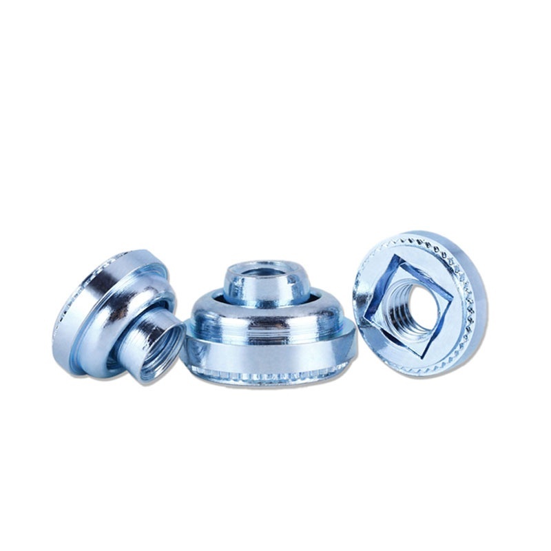 300 मालिका स्टेनलेस फ्लोटिंग लाँग क्लिंचिंग नट स्थापित करण्यासाठी, आपल्याला एक समर्पित हायड्रॉलिक किंवा वायवीय रिव्हेटिंग टूल आवश्यक आहे. प्रथम, नट प्री-ड्रिल्ड होलमध्ये घातली जाते आणि नंतर त्या साधनासह दबाव लागू केला जातो. तळाशी (नॉरल्ड किंवा रिबर्ड भाग) मेटल प्लेटमध्ये दाबतो आणि कायमस्वरुपी विकृत होतो, त्यास त्या जागी लॉक करतो.