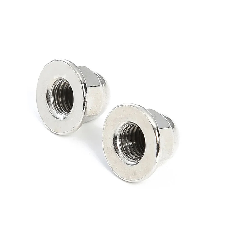 या एकॉर्न नट फ्लँजवरील फ्लँज तुम्हाला एक मोठा संपर्क क्षेत्र देते, म्हणून ते प्रमाणित नटपेक्षा घट्ट धरते. ती विस्तीर्ण पृष्ठभाग दाब अधिक समान रीतीने पसरवते, जे सामग्रीला डेंटिंग टाळण्यास मदत करते आणि कंपन किंवा सतत हालचाल होत असताना वस्तू सैल होण्यापासून वाचवते.