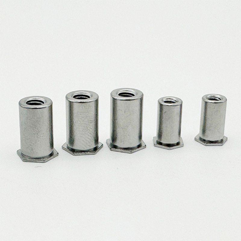 हे रिव्हेटेड नट एक कठोर, कंपन-प्रूफ मादी धागा तयार करते, जेव्हा आपण थ्रेड्स वेल्ड किंवा टॅप करू शकत नाही तेव्हा उत्कृष्ट. हे शीट मेटल, पॅनेल आणि संलग्नकांसाठी योग्य आहे जिथे आपल्याला स्वच्छ देखावा आणि विश्वासार्ह कामगिरीची आवश्यकता आहे.