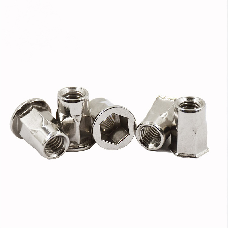 उ: जोपर्यंत तुम्ही प्रथम योग्य आकाराचे षटकोनी छिद्र ड्रिल करता तोपर्यंत तुम्ही ते सर्व प्रकारच्या सामग्रीमध्ये स्थापित करू शकता. सामान्य लोक वापरतात ते सौम्य स्टील, ॲल्युमिनियम आणि फायबरग्लास आहेत. ठिसूळ किंवा मऊ मटेरियलमध्येही ते खरोखर चांगले काम करतात - जसे की प्लास्टिक, पार्टिकल बोर्ड किंवा पातळ शीट मेटल. या सामग्रीमध्ये नियमित रिव्हेट नट फिरू शकतात, परंतु हे हेक्स आकार त्यांना अधिक चांगले पकडते. अशाप्रकारे, तुम्हाला एक थ्रेडेड पॉइंट मिळेल जो घन राहतो आणि फिरत नाही.