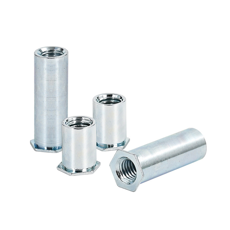 कार्बन स्टील हेक्सागॉन रिव्हेट नट स्तंभ मध्यम-कार्बन स्टीलमधून त्यांचे मुख्य यांत्रिक वैशिष्ट्ये मिळतात, बहुतेकदा आयएसओ 898 वर्ग 8 किंवा एसएई जे 429 ग्रेड 5 सारखेच असतात. या स्टीलमध्ये उच्च खेचण्याची शक्ती असते (सामान्यत: 800 एमपीएपेक्षा जास्त) आणि चांगले उत्पन्न सामर्थ्य असते, जेणेकरून ते न तोडता मजबूत क्लॅम्पिंग फोर्स, कंपन आणि हालचाल करणारे भार हाताळू शकतात.