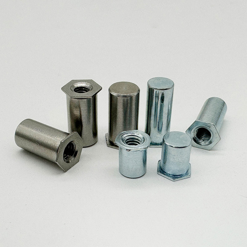 हा रिवेट नट स्तंभ आपल्याला पॅनेल, एक्सट्रेशन्स किंवा शीट मेटल सेटअपमध्ये एक मजबूत मादी धागा (सामान्यत: मेट्रिक किंवा यूएनसी) देतो. थेट बेस मटेरियलमध्ये थ्रेड टॅप करण्याच्या तुलनेत, हे पुल-आउट सामर्थ्य वाढवते.