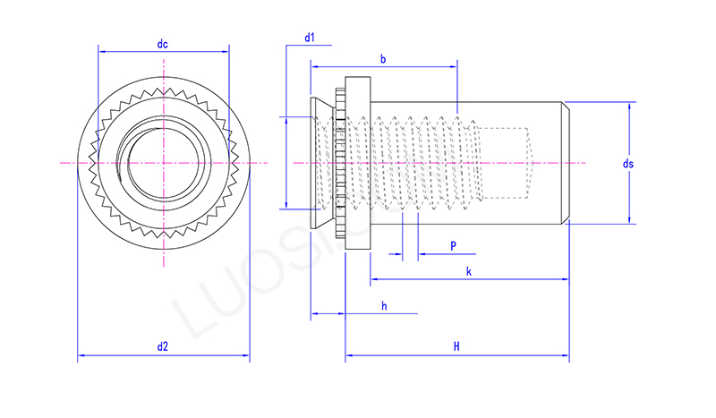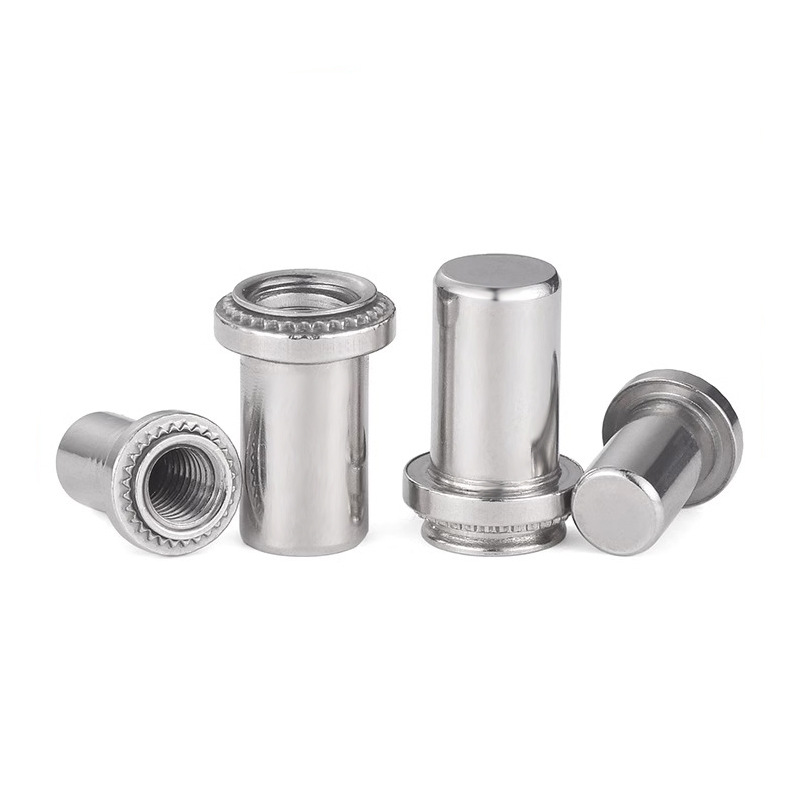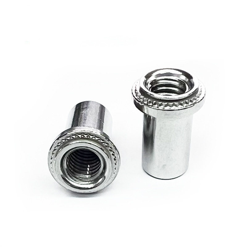 सीलिंग क्लिंचिंग नट अगदी सरळ आहे, आपण मानक वायवीय किंवा हायड्रॉलिक क्लिंचिंग साधने वापरू शकता. हे कसे कार्य करते ते येथे आहे: प्रथम, नट प्री-पंच केलेल्या छिद्रात ठेवा, नंतर दबाव लागू करण्यासाठी पंच आणि डाय सेट वापरा. डाई नटच्या क्लिंच कॉलरच्या सभोवताल शीट मेटल दाबते, एका द्रुत चरणात एक घन यांत्रिक लॉक तयार करते.