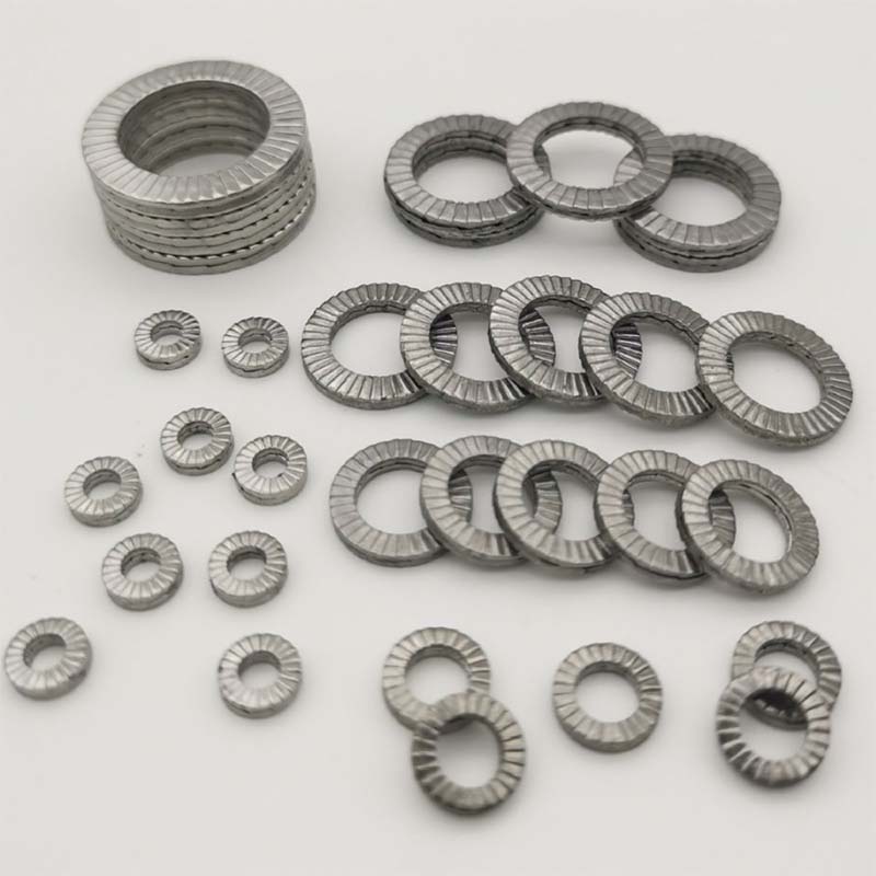 दडबल स्टॅक केलेले सेल्फ लॉकिंग वॉशरइलेक्ट्रो-गॅल्वनाइझिंग, हॉट-डिप गॅल्वनाइझिंग किंवा पॅसिव्हेशन सारख्या पृष्ठभागाच्या उपचारांसह येते. हे कोटिंग्ज गंज टाळण्यास मदत करतात, घर्षण कमी करून स्थापना नितळ बनवतात आणि ओल्या किंवा अम्लीय ठिकाणी वॉशरला जास्त काळ टिकू देतात.