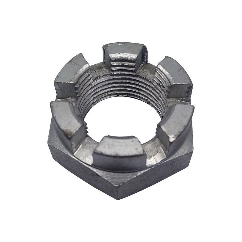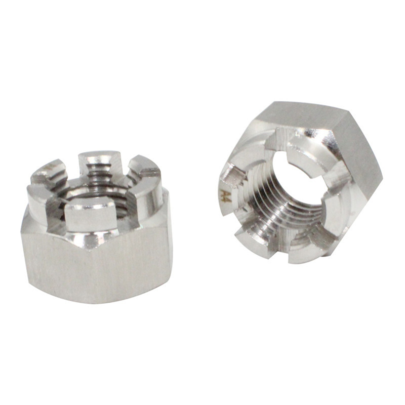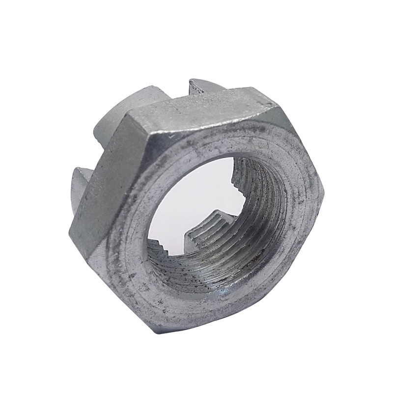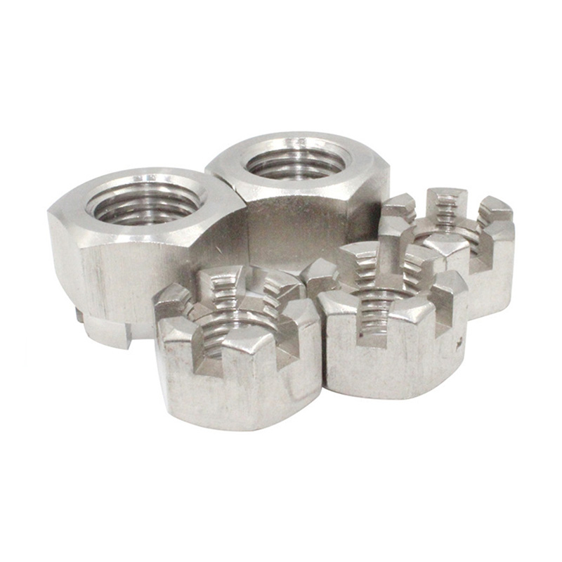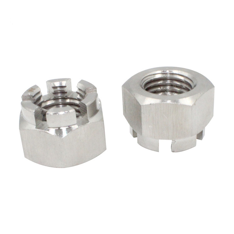 घुमटाच्या भागामध्ये कित्येक स्लॉट असतात (सहसा सहा), जे समान रीतीने वितरित केले जातात आणि नटच्या अक्षांसह सरळ वाढविले जातात. हे स्लॉट तंतोतंत मशीन केलेले आहेत आणि मानक ओपन पिन उत्तम प्रकारे जुळवू शकतात. या स्लॉटेड राउंड हेड नटची रचना व्यावहारिक आणि सुरक्षितता दोन्ही आहे: एकदा आपण नट घट्ट केल्यास ते त्या जागी निश्चित केले जाऊ शकते, ज्यामुळे कंप किंवा इतर शक्तींमुळे ते बोल्टपासून खाली पडण्यापासून प्रतिबंधित करते.