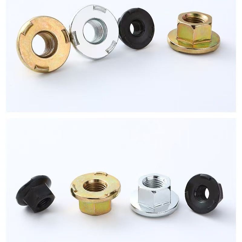 या नटांवरील फ्लॅन्जेड बेस गोष्टी स्थिर ठेवण्यास मदत करते आणि त्यांनी जोडलेल्या भागांवर पोशाख कमी करते. ते मुख्यतः उच्च-दर्जाच्या स्टीलपासून बनविलेले असतात, जेणेकरून उष्णता बदल आणि ओलावासह ते खूप दबाव घेऊ शकतात.