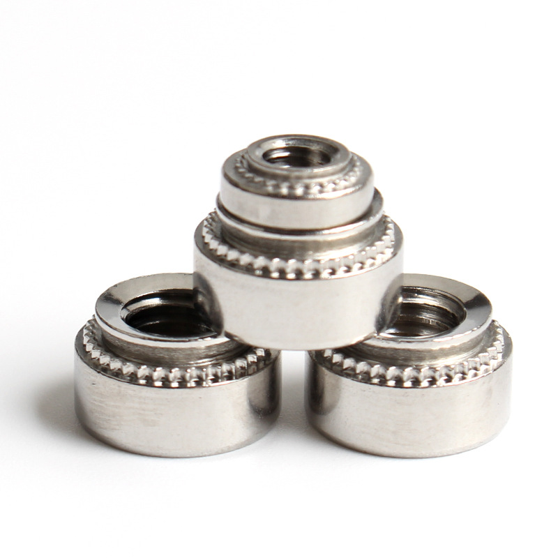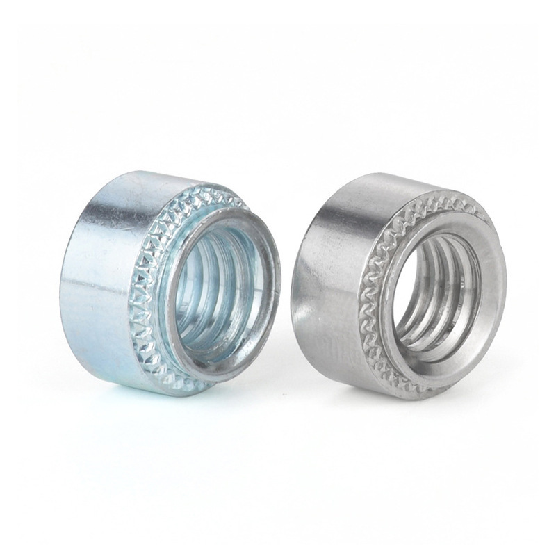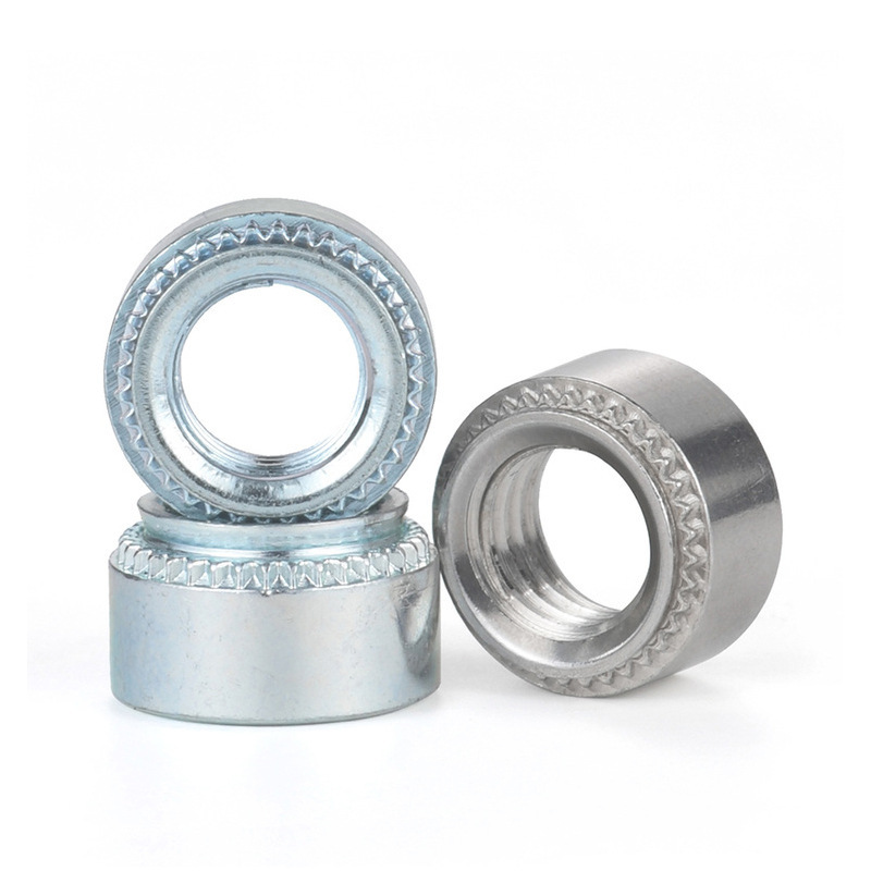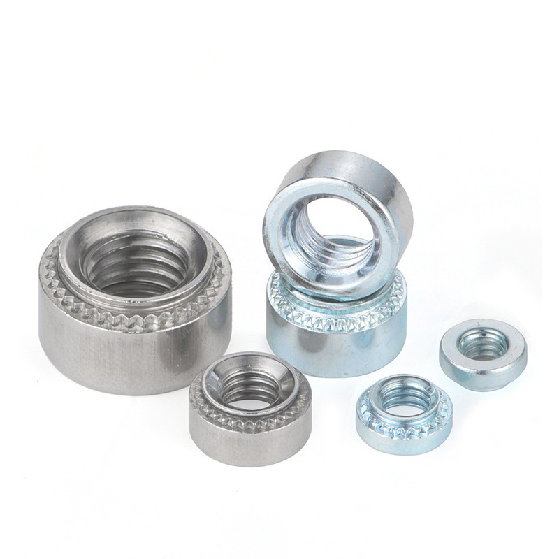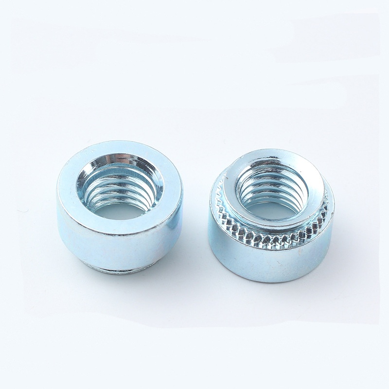 प्लग-इन रिवेट नटांची सामग्री निवड वैविध्यपूर्ण आहे. त्यांची कोर सामग्री सामान्यत: विविध प्रकारचे स्टील असते, ज्यात कार्बन स्टील, स्टेनलेस स्टील (जसे की सामान्य 304 स्टेनलेस स्टील किंवा 316 स्टेनलेस स्टील) इत्यादी; विशिष्ट परिस्थितींमध्ये, पितळ किंवा अॅल्युमिनियम देखील उत्पादन सामग्री म्हणून वापरले जातात. गंज प्रतिरोध सुधारण्यासाठी, स्टील रिवेट नट्स सामान्यत: पृष्ठभागावर उपचार केले जातात. सामान्य कोटिंग प्रक्रियेमध्ये जटिल वातावरणात त्यांचे गंज प्रतिकार वाढविण्यासाठी गॅल्वनाइझिंगचा समावेश आहे.