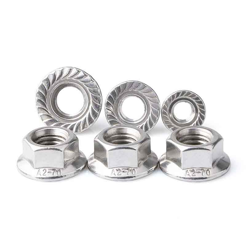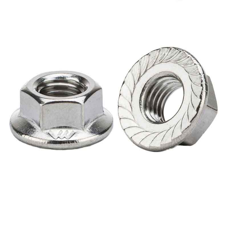फ्लँजच्या तळाशी थोडेसे सेरेशन्स आहेत. हे त्यांना कंपनाचा चांगला प्रतिकार करण्यास मदत करतात, त्यामुळे हलणारे भार असताना ते सैल होत नाहीत. वेगळ्या वॉशरसह नियमित नट वापरण्याच्या तुलनेत हे एक मोठे प्लस आहे.