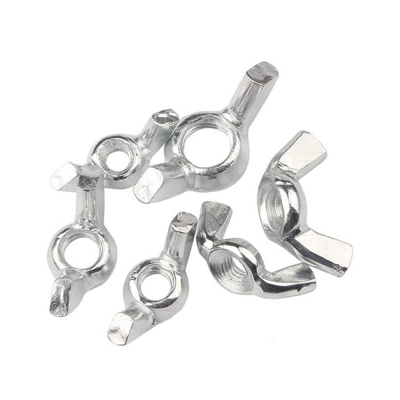 मेटल राऊंड विंग नट हा हाताने घट्ट केलेला फास्टनर आहे ज्याला दोन गोलाकार "पंख" (म्हणजे विंग प्लेट्स) आणि थ्रेडेड मध्य भाग आहे. या विंग प्लेट्सचे पृष्ठभाग गुळगुळीत आणि बाहेरून वळलेले असतात, ज्यामुळे तुम्हाला ते सहजपणे घट्ट आणि सैल करता येतात. याला कोणतीही तीक्ष्ण कडा नाहीत ज्यामुळे तुमच्या बोटांना दुखापत होऊ शकते. ही धातूची सामग्री - सामान्यतः कार्बन स्टील आणि झिंक किंवा स्टेनलेस स्टीलने लेपित - वारंवार वापरल्यानंतरही मजबूत आणि टिकाऊ राहते. थ्रेड रोलिंगद्वारे तयार होतात आणि वापरताना ते खूप गुळगुळीत असतात. हे मानक बोल्ट आणि वॉशर्सच्या संयोगाने वापरले जाते. हे सामान्यतः कव्हर्स, क्लॅम्प्स, समायोज्य फर्निचर किंवा वारंवार वेगळे केले जाणाऱ्या कोणत्याही भागांमध्ये आढळते.