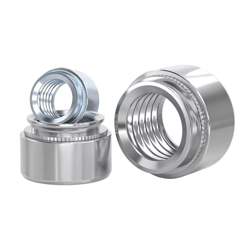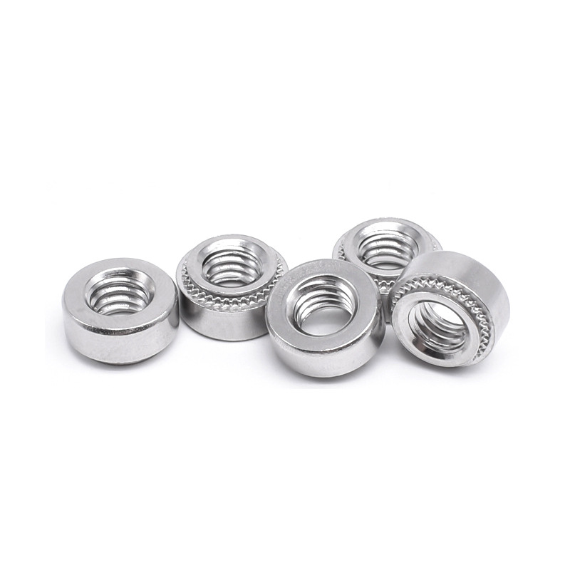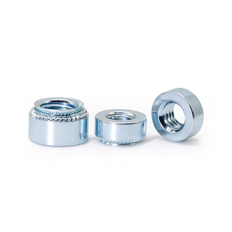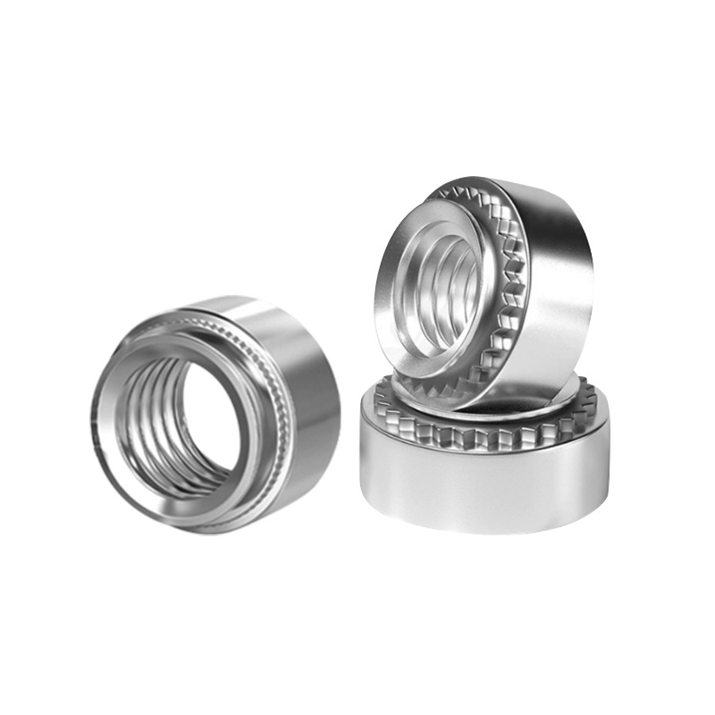 कायमस्वरुपी क्लिंचिंग नट शीट मेटलसाठी वापरला जाणारा कायमस्वरुपी फास्टनर आहे. वेल्डिंग किंवा थ्रेडिंगची आवश्यकता असलेल्या नियमित शेंगदाण्यांऐवजी, ते प्रेस फोर्ससह द्रुतपणे स्थापित केले जाऊ शकते, गोष्टी जोडण्यासाठी एक मजबूत, विश्वासार्ह थ्रेडेड स्पॉट तयार करते. यात एक तंतोतंत बनविलेले पायलट आणि एक नॉरल्ड शॅंक आहे. स्थापित केल्यावर, हे भाग लॉक तयार करुन ठेवलेल्या सामग्रीमध्ये हलतात.