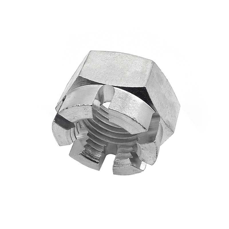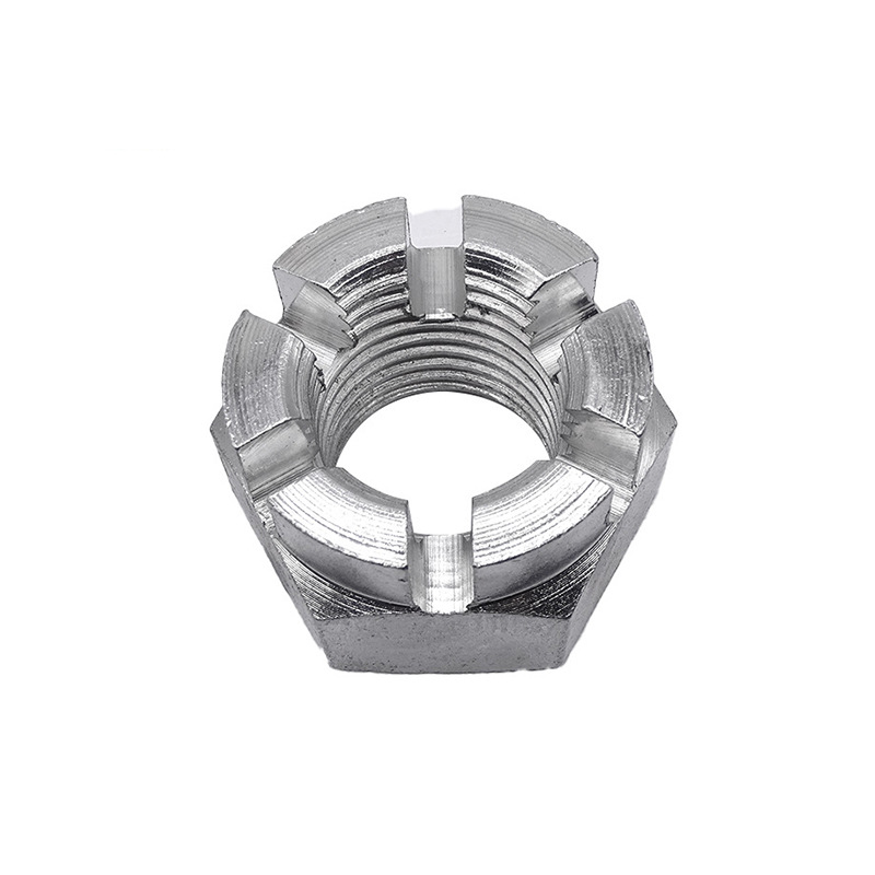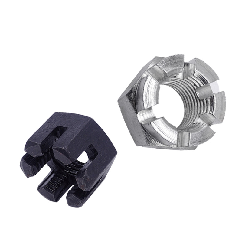 स्लॉटसह क्राउन नट सकारात्मकपणे लॉक करणे जड औद्योगिक उपकरणांमध्ये मोठ्या प्रमाणात वापरले जाते, जसे की प्रेस, पोहचविणारी प्रणाली आणि फिरणारी शाफ्ट इ.