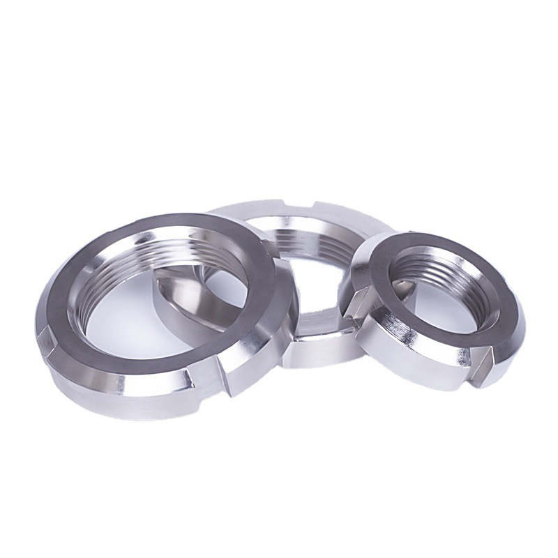 अचूक मशीन केलेले स्लॉटेड गोल नट हे विशेष फास्टनर्स आहेत जे यांत्रिक उपकरणांवर भाग ठेवण्यासाठी वापरले जातात जेथे नियमित नट कंपनामुळे सैल होऊ शकतात. नटचा मुख्य वापर कार आणि औद्योगिक मशीनवर होतो—विशेषत: एक्सल, शाफ्ट आणि कायमस्वरूपी लॉक आवश्यक असलेले हलणारे भाग.