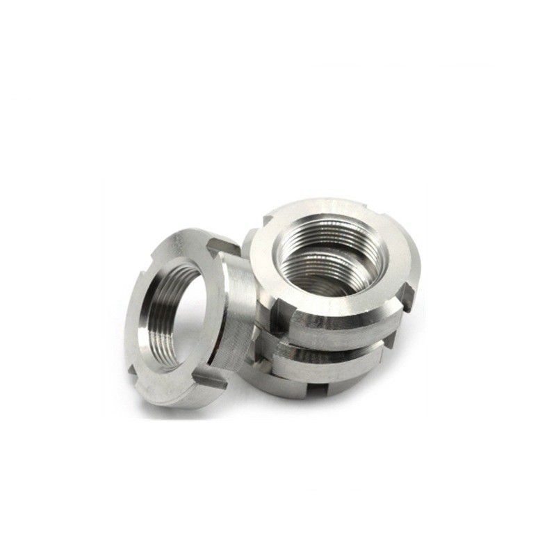 A:आमच्या रोलिंग शाफ्ट स्लॉटेड लॉक नट्सवरील स्लॉट्स तुम्ही नट खाली घट्ट केल्यावर बोल्ट किंवा स्टडमधील छिद्राप्रमाणे बनवले जातात. मग आपण स्लॉट आणि भोक माध्यमातून एक cotter पिन ढकलणे. हे स्लॉटेड गोल नट भौतिकरित्या जागेवर लॉक करते, त्यामुळे ते कंपनापासून सैल होत नाही — आणि ज्या अनुप्रयोगांमध्ये सुरक्षितता असणे आवश्यक आहे त्यांच्यासाठी हे खरोखर महत्वाचे आहे.