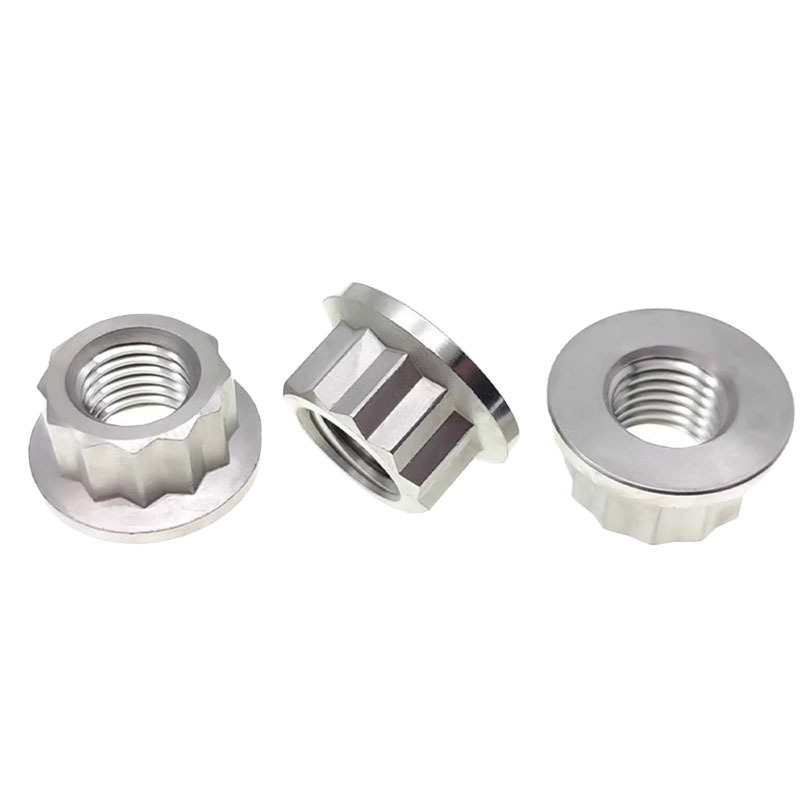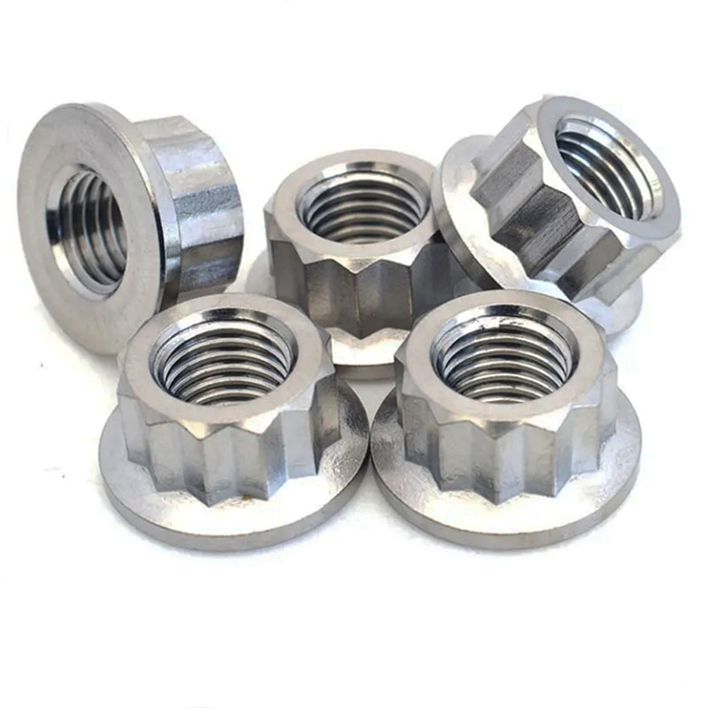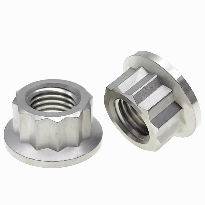 आमच्याकडे वेगवेगळ्या सामग्रीमध्ये 12-बिंदू वॉशर नट्स आहेत-जसे कार्बन स्टील, स्टेनलेस स्टील (ए 2-70, ए 4-80 सारखी सामग्री) आणि अॅल्युमिनियम.