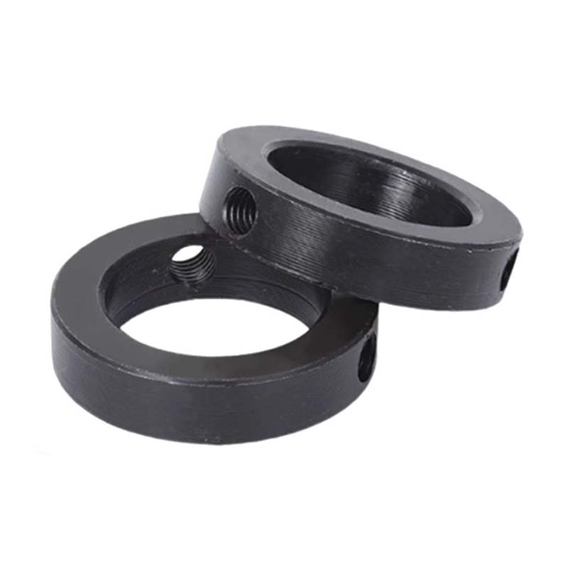 लॉक कॉलरसह स्क्रू लॉकिंग रिटेनिंग रिंगमध्ये एक थ्रेडेड लॉकिंग रिंग वैशिष्ट्यीकृत आहे जी थेट शाफ्ट किंवा बेअरिंग हौसिंगवर स्क्रू करते, सुरक्षित, कंपन-प्रतिरोधक लॉक प्रदान करते. पारंपारिक राखून ठेवणार्या रिंग्जच्या विपरीत, ज्यासाठी बेंड करणे आवश्यक आहे, या राखून ठेवणार्या रिंग्ज शाफ्टच्या सभोवताल स्थिर दबाव लागू करण्यासाठी लॉकिंग रिंगवर समायोज्य स्क्रू वापरतात. जरी उच्च गती किंवा उच्च दलाच्या खाली, या राखून ठेवणार्या रिंग्ज विस्थापनास प्रतिबंधित करतात. लॉकिंग रिंग देखील समान रीतीने दबाव वितरीत करते जेणेकरून शाफ्ट एकाच भागात संकुचित होणार नाही. रिंग्ज रिंग्ज आणि लॉकिंग रिंग्जचे संयोजन अनुप्रयोगांसाठी योग्य आहे ज्यास अचूक संरेखन आणि दीर्घकालीन स्थिरता आवश्यक आहे, जसे की गियर सिस्टम किंवा फॅक्टरी उपकरणे.