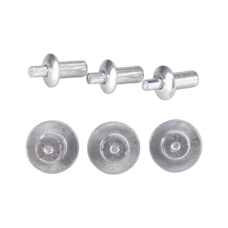 सीलबंद संयुक्त कोर भेदक रिवेटमध्ये कोर शाफ्ट आणि स्लीव्हसह एक अद्वितीय डिझाइन असते - सामान्यत: त्यांच्याकडे मोठे आणि विसंगत डोके असते, जे एक चांगले दबाव -पृष्ठभाग प्रदान करते. त्यांचे मुख्य शरीर प्री-ड्रिल केलेल्या छिद्रांमध्ये विस्तारित करण्यासाठी डिझाइन केलेले आहे, ज्यामुळे घट्ट आणि सुरक्षित निर्धारण होऊ शकते. निरीक्षण करून, एखादी व्यक्ती थ्रू-बोल्ट योग्यरित्या स्थापित केली आहे की नाही हे निर्धारित करू शकते: जेव्हा एखादी विशिष्ट शक्ती लागू केली जाते तेव्हा ती स्वच्छ आणि सुबकपणे तुटेल, एक व्यवस्थित आणि सुंदर देखावा सादर करेल. हा विशिष्ट आकार त्यास घट्ट पकडण्यास सक्षम करतो आणि सैल होण्याची शक्यता नाही.