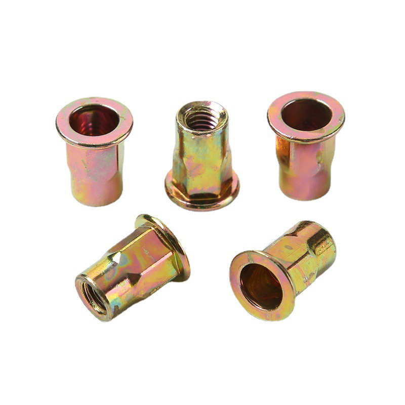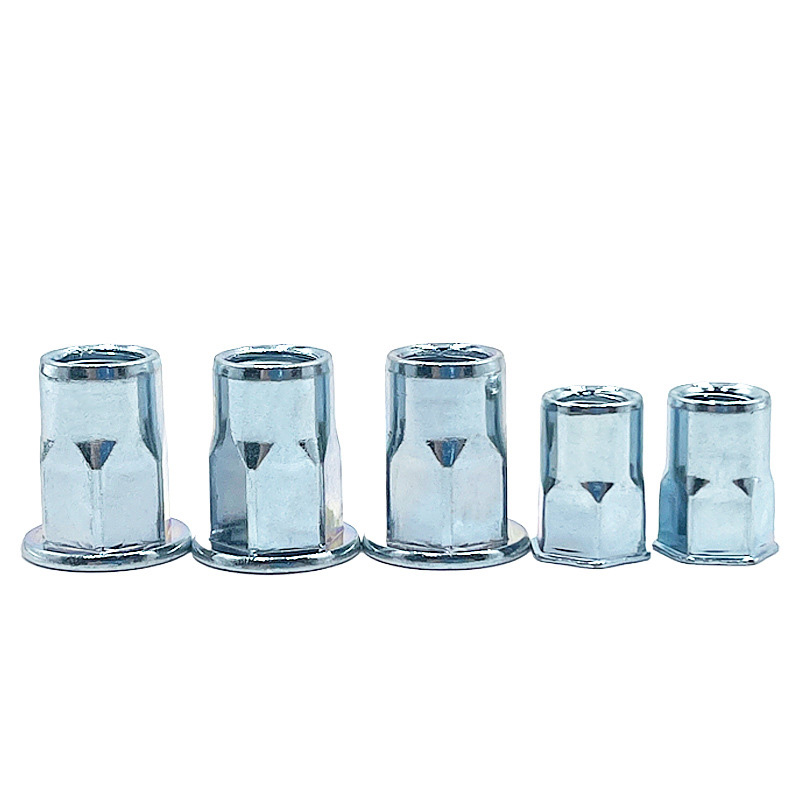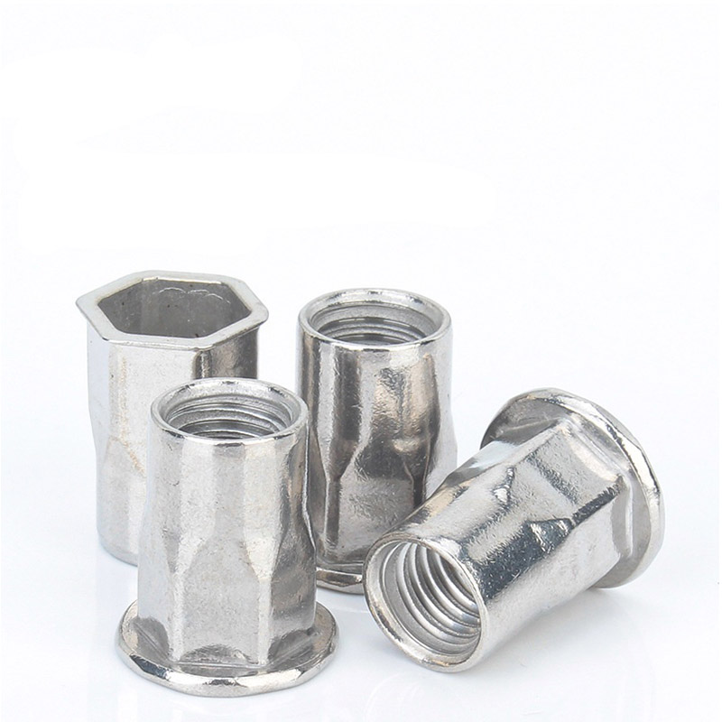 सुरक्षित अँकरिंग हेक्स रिव्हेट नट विविध उद्योग आणि प्रकल्पांच्या विविध अनुप्रयोगांच्या गरजा पूर्ण करण्यासाठी विविध टिकाऊ सामग्रीपासून तयार केले जातात, ज्यात सामान्य कार्बन स्टील, स्टेनलेस स्टील (जसे की सामान्यतः वापरले जाणारे ग्रेड 304 आणि 316), हलके ॲल्युमिनियम आणि प्रवाहकीय तांबे यांचा समावेश होतो. नट्ससाठी योग्य सामग्रीची निवड प्रामुख्याने व्यावहारिक घटकांवर अवलंबून असते जसे की फास्टनरला किती ताकद असणे आवश्यक आहे, वेगवेगळ्या सेटिंग्जमध्ये गंज रोखण्याची त्याची क्षमता आणि फास्टनरच्या वापरादरम्यान त्याला कोणत्या विशिष्ट पर्यावरणीय परिस्थितीचा सामना करावा लागतो.
