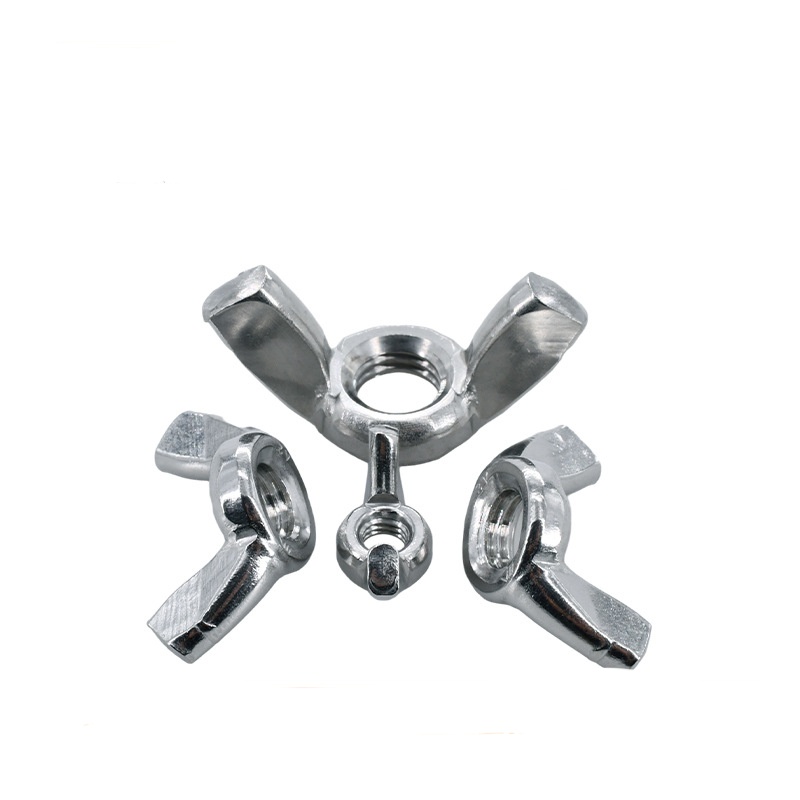 नटचा तळ सपाट असतो, बाहेरील बाजू किंवा दात नसतो. अंतर्गत धागा मानक बोल्ट/स्क्रूशी पूर्णपणे सुसंगत आहे. पंखांच्या तुकड्यांची उंची आणि जाडी जसजसा आकार वाढेल तसतशी वाढेल.